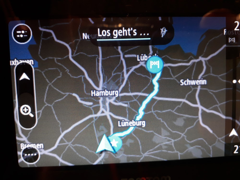 Da es schon recht spät war, sollte es die Unterkunft einigermaßen im Hellen erreichbar sein und nicht so weit vom Einstiegspunkt in Lübeck entfernt sein. Meine Wahl fiel auf Bispingen. Um ca. 15:30 und bei ca.6-8 Grad, mit kleinen Regenschauern ging es über die Autobahn. Ca. 19:30 Uhr war ich da. Abends dann die Route nach Lübeck gesucht. Landstraße dauert nicht viel länger als Autobahn, also im großen Bogen um Hamburg herum.