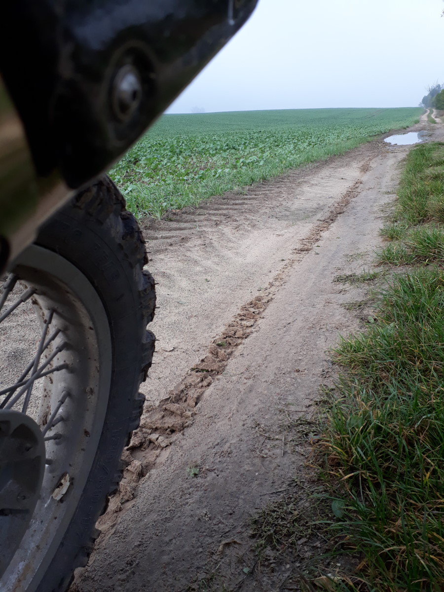 Diesen Löß auf diesem Bild hier... und hier... ...habe ich in Norddeutschland ebenfalls mal kennengelernt: sieht alles easy aus, plötzlich wie auf Glatteis, und dann, auf dem Bobbes sitzend, war die nächste Feststellung, daß es gar nicht so einfach ist, zuerst sich und dann das Mopped wieder aufzurichten...