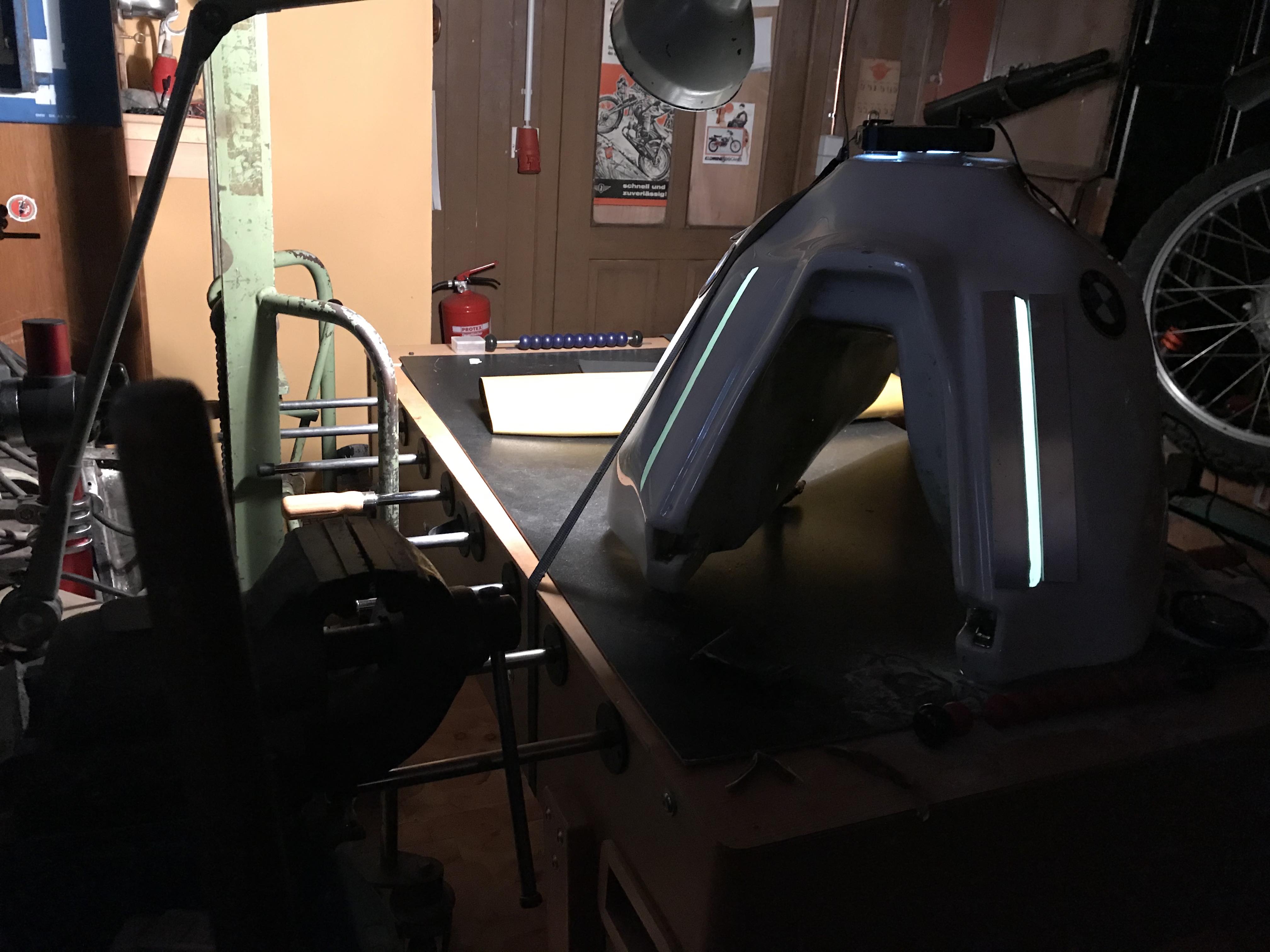 So kleines update, die Füllstandsanzeige ist bis auf Polierarbeiten und die Maßanzeige fast fertig. Mit zwei Aluprofilen eine Schablone abgeklebt und gedremelt. Bei Innenbeleuchtung ist das Ergebnis schön zu sehen