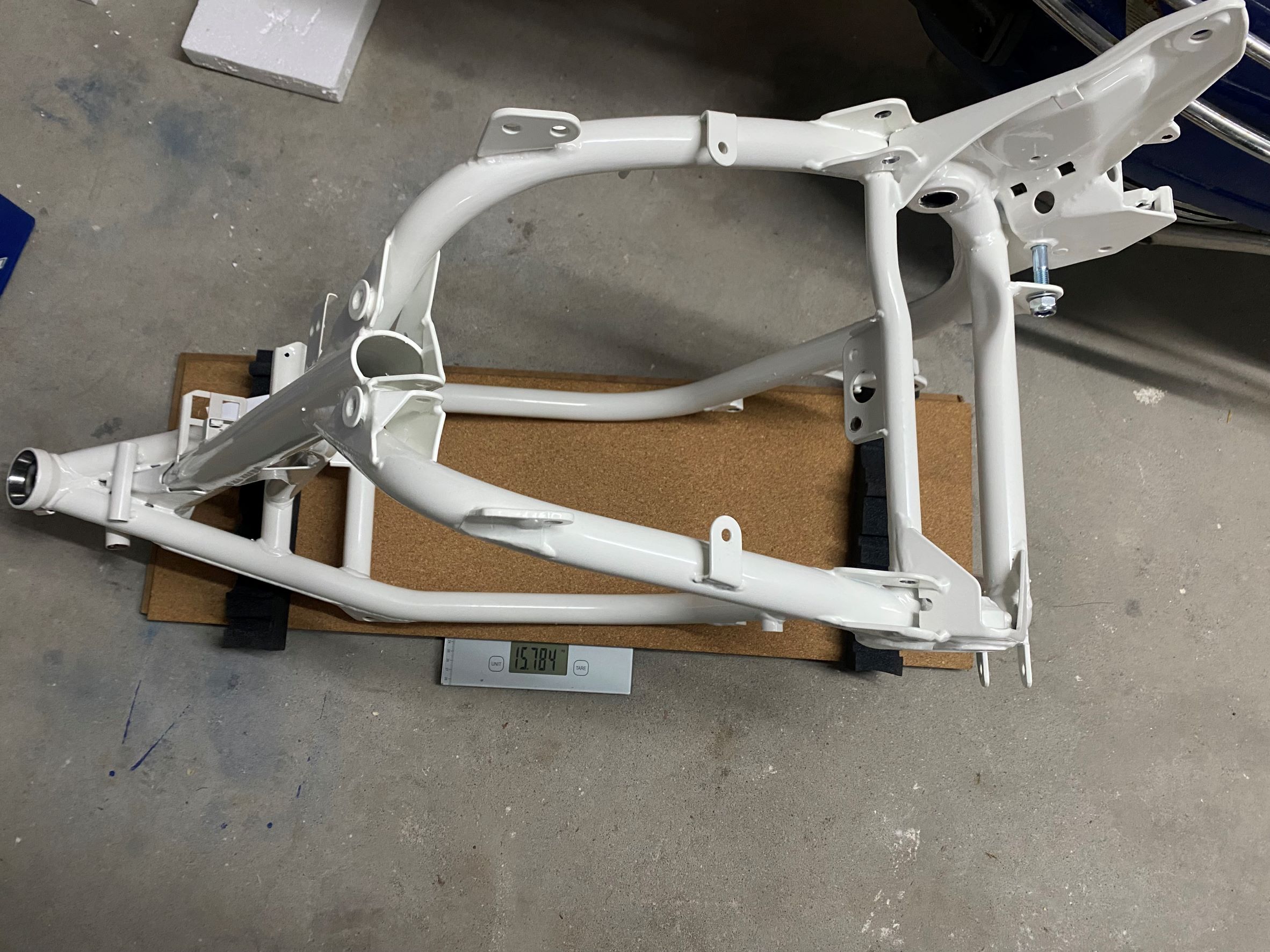 Hallo zusammen, da ich dieses Jahr, am 12.12.22 bei HPN einige Teile zum Aufbau der 966 abholen durfte, möchte ich euch gerne daran ein wenig teilhaben lassen. Mitte Januar soll es in etwa losgehen. Falls ihr Tipps zum Aufbau des Motorrades und den Teilen habt, nur her damit! Fangen wir mal an, mit dem, das auf dem Gabentisch schon lag: -Hauptrahmen verstärkt, für Umbau "Sport" (mit der Schraube für die Strebe hinten-warum?) -Gabel WP 4860, gekürzt auf 250mm+ HPN Gabelbrücken -Federbein Öhlins mit Ausgleichsbehälter und Handrad -Heckrahmen G/S, verstärkt/umgebaut ala HPN -Hauptständer, verändert Bestellt sind ein VR mit 100 GS Nabe, 1,85x21 Felgenring, ein HR mit HPN-Rallye-Nabe, 17x2,5 -beides von Morad. Sitzbank HPN. Lenker AX2 von Maguraist da, Anlage für 2 Scheinwerfer übereinander; das waren die Neuteile... Vorhanden sind eigentlich alle restlichen notwendigen Teile von meiner "Alten", der 399 Schwinge, HAG, Motor usw. Neu möchte ich noch haben: Brems- und Kupplungsanlage mit Griffen, alle Schrauben, Batterie,... Eigentlich hätte ich ja als Radsatz gerne etwas von Excel/Talon gehabt, aber Klaus meinte, das gibt es für meine Konfiguration (hinten 1100er Schwinge) nicht... Und für alle Gewichtsaffinen Menschen ein paar Bilder......der erste Batteriekasten ist von HPN, der zweite ein alter von mir (die Löcher absolut freihändig, mit Hilfe einiger Hopfengetränkschlückchen verursacht..;-) Und das eingewickelte Teil soll die Kardanwelle samt dem Getriebeadapter darstellen... Gruß, Peter