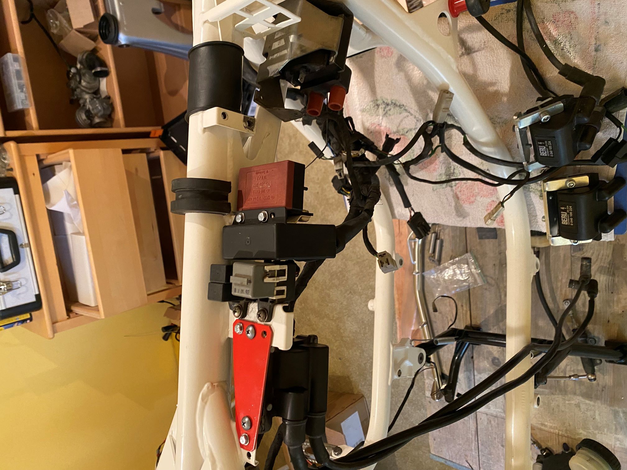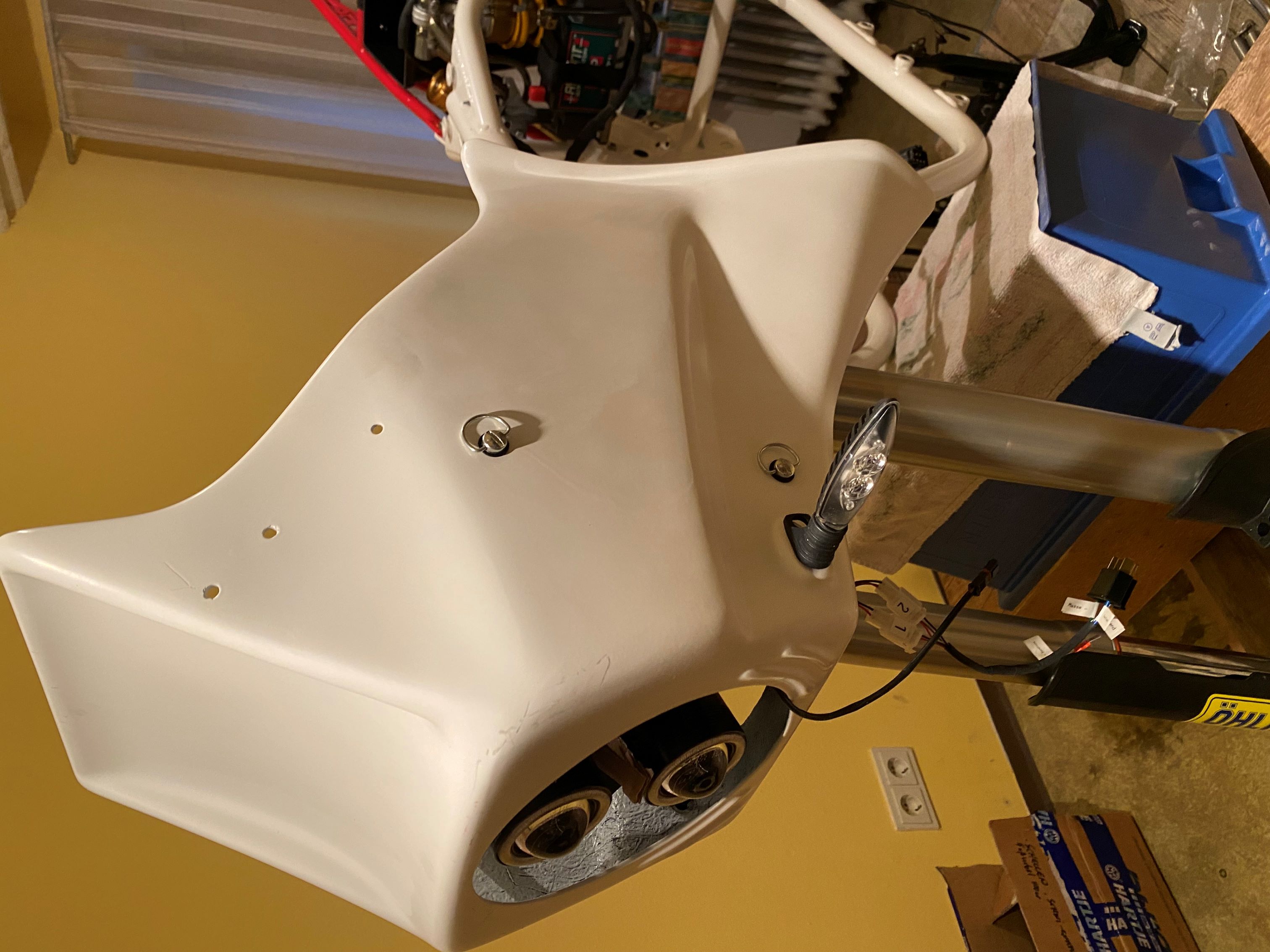 Grüß euch und frohe Ostern! Nachdem es bei 2 PCs in den letzten Wochen Probleme gab, musste ich einige Passwörter ändern...so auch hier! Eigentlich bin ich ja die "Surfgans", aber auch hier funktioniert mein Passwort nicht mehr-egal, dann fang ich von vorne an :wink Da ich kaum Zeit (und keine Teile) hatte, kam ich nicht wirklich weiter...aber: -die Entscheidung für die Blinker und das HAG ist gefallen: Ich nehme die , welche z.B. an einer 1200GS verbaut wurden (die weißen sind mir ein wenig zu elegant...); beim HAG werde ich mal 31/11 (in Verbindung mit einem ersten kurzen/ langen 5.Gang) ausprobieren.. -die Maske vorne habe ich kurz montiert, hier überlege ich mir die Schnellverschlüsse, gefallen mir optisch (gefährlich wegen Diebstahl? ) Würdet ihr die alten, funktionierenden Zündspulen weiter verwenden? Weil ich hätte noch welche von einer 1100 GS und zwei Beru.... Schöne Tage!