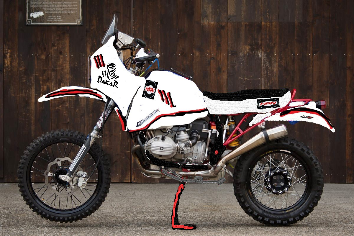 Ach ja, ich wollte ja noch die Gestaltung der HPN 966 zur Diskussion stellen... So wie auf dem ersten Bild könnte sie ungefär werden (ohne Roadbook)...was haltet ihr davon (das Weiß muss man sich im gleichen Farbton vorstellen, ich kanns halt nicht am PC!!)? Tendiere bei der Front zum letzten Bild... Oder doch lieber in grün? Gruß, Peter