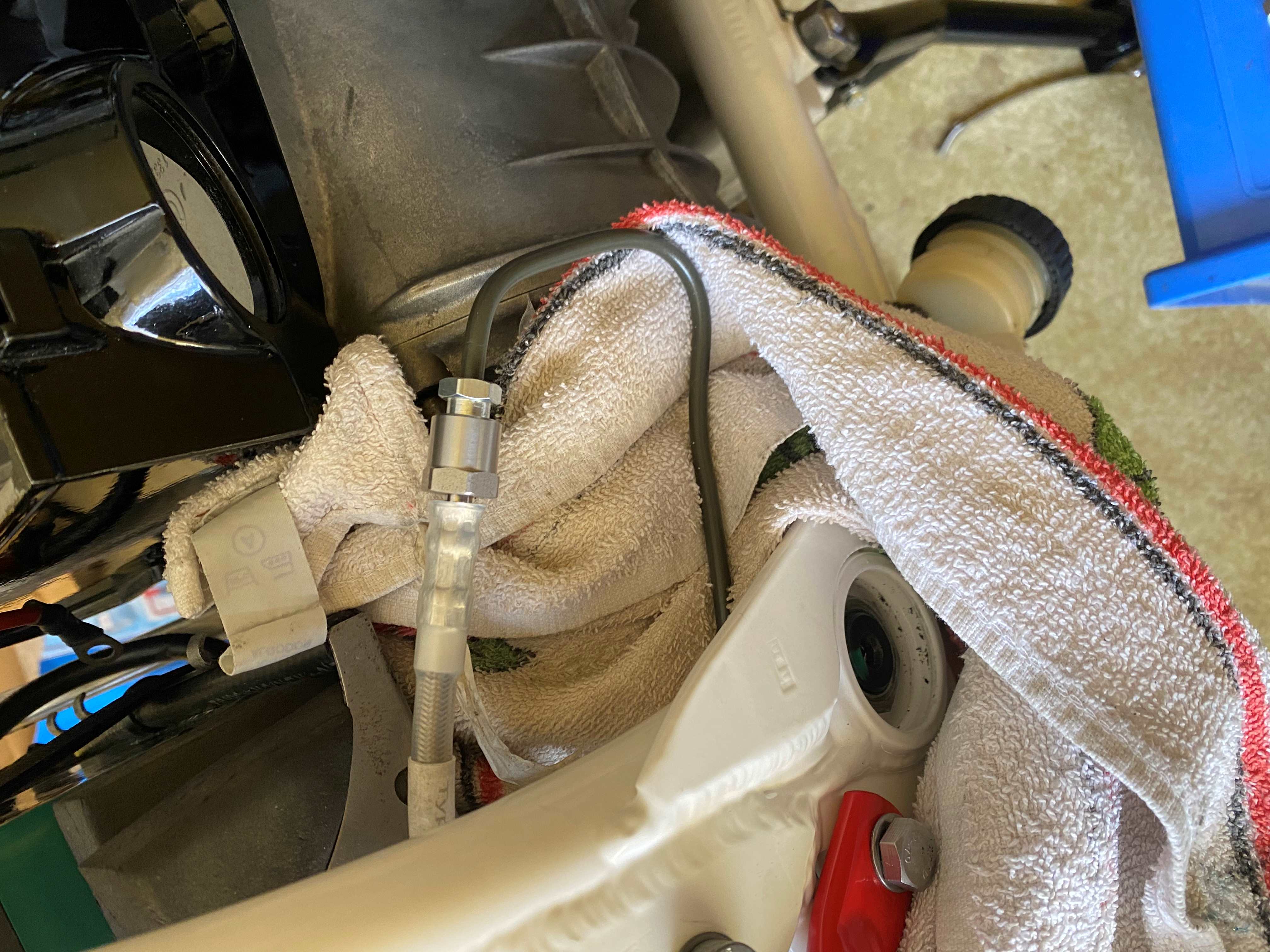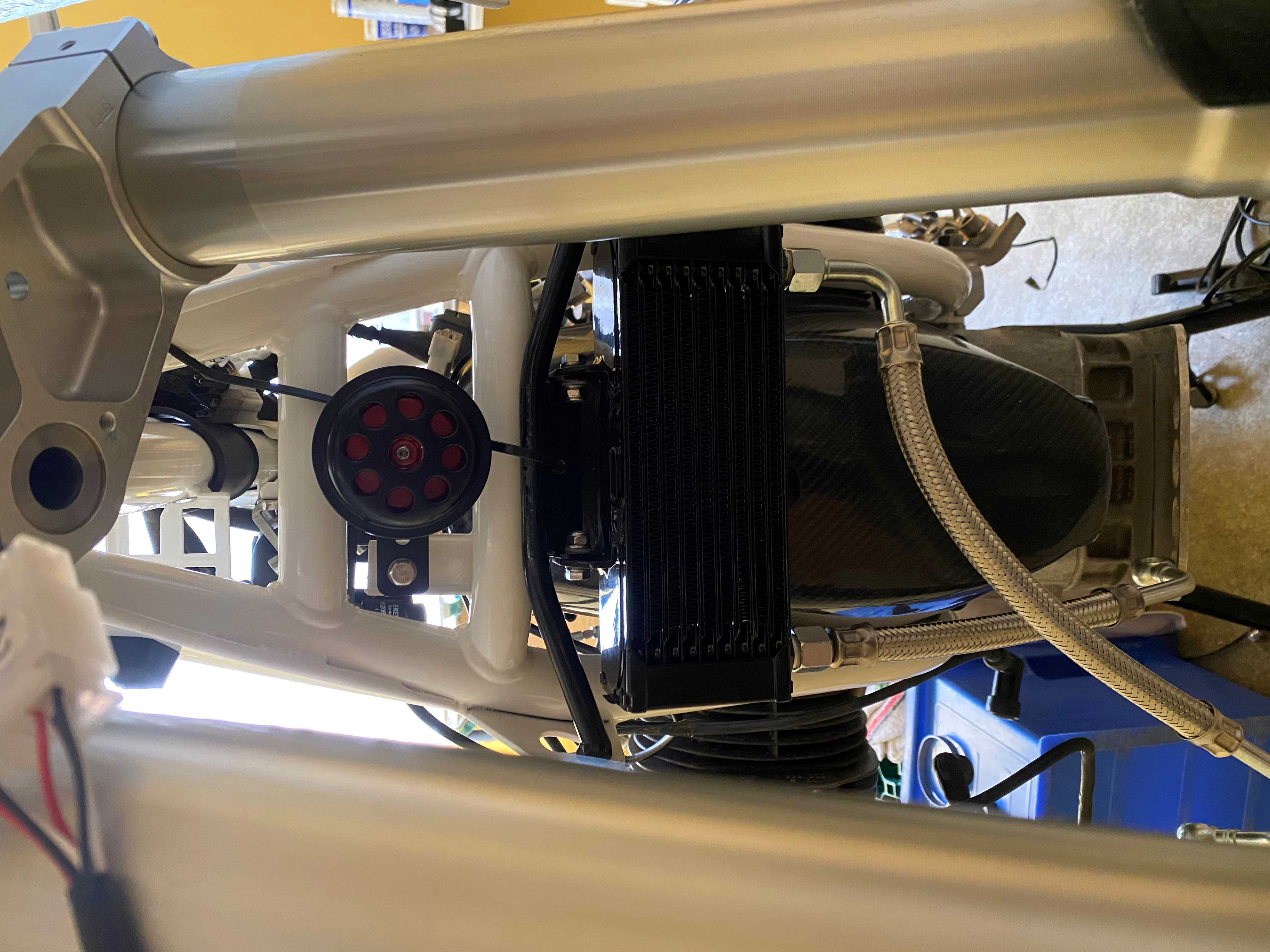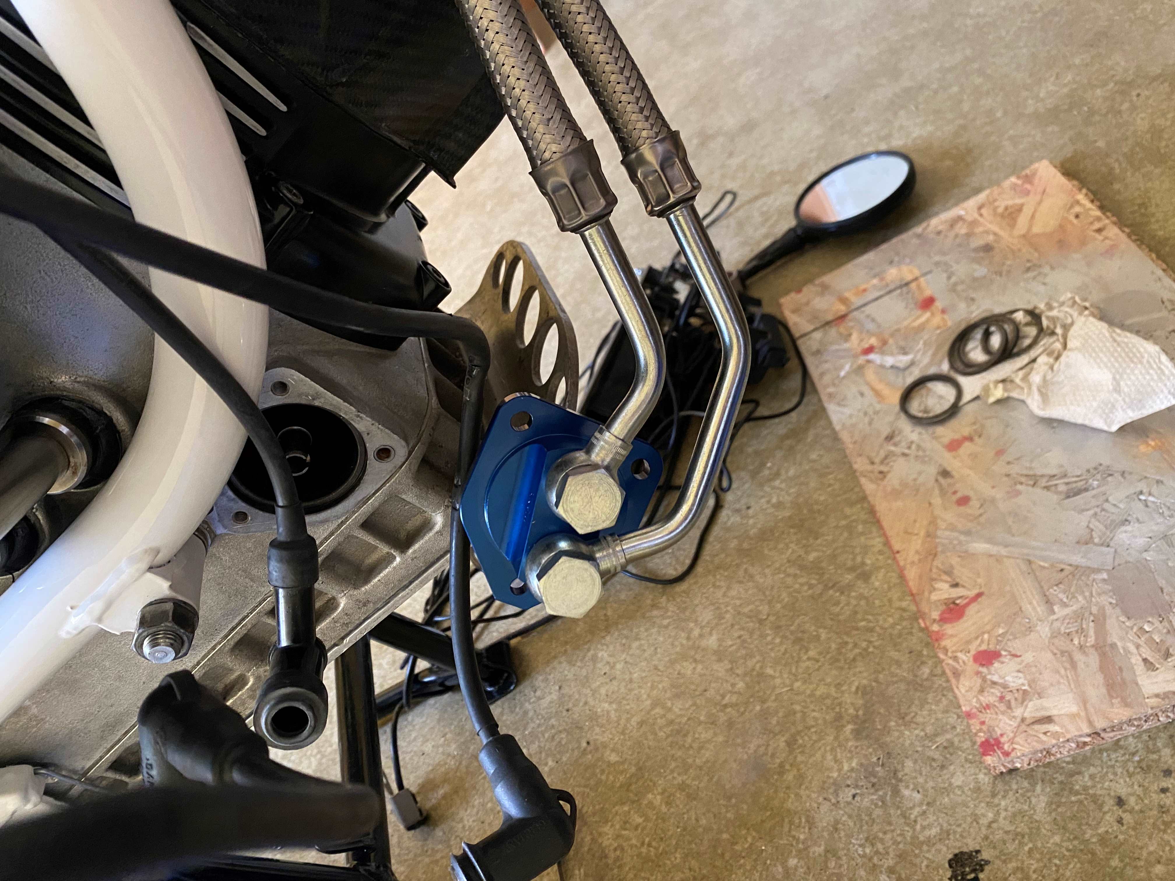 Moin und servus-es geht endlich weiter! Nachdem ich letzte Woche Motor, Getriebe und HAG von der Überholung (unter anderem) von Herrn Wank abholen durfte, bauten wir (mein Freund Jui hat mir geholfen-an dieser Stelle nochmals vielmals danke!) die ersten zwei "Brocken" ein.... heute ergänzte ich Schwinge, Kardan, Endantrieb, Bremse hinten und Hinterrad---- was soll ich sagen? Es dauerte alles DEUTLICH länger, als gedacht...und das lag nicht am Bier!! Die Nerven waren manchmal schon etwas angespannt-alleine den Zapfen des Endantriebes mit dem Kardan zu verbinden...am ersten Tag gab ich, nach ein paar Versuchen (fast 30 min.!) "freihändig" einfach auf...heute legte ich, damit der Kardan im Tunnel höher kommt, einen Schwamm unter, an dem eine Schnur befestigt war, klemmte noch einen Schraubenzieher leicht als Führung ein und fädelte beseelt nach nur 10 Min. ein---ich will jetzt keine Vergleiche ziehen- aber mit etwas Fantasie kann man sagen-irgendwoher kennt man das Schwamm rausziehen danach nicht vergessen!,-) Zur Erholung zwischendurch schrubbte ich die z.B. die Schrauben für HR und Paraleverschwinge mit der Metallbürste oder bohrte Löcher in einen Hebel, neuer Kühler,... Als nächstes würde ich gerne die Elektrik ein wenig ordnen und anschließen (z.B. nun zwei gliche Zündspulen), erinnere mich aber nicht mehr, welche Zündkerzen man bei einer Doppelzündung mit welchen Zündspulenkabel anschließt...Wer weiß da Rat? Und die Endstücke der Ansaugstutzen der Vergaser (Aluringe) schlackern plötzlich im Lufi-Kasten-Anschluss-muss ich da die schwarzen Schnorchel mit den Propellern wieder einsetzen (Sekundärluftsystem? Lufi-Kasten ist nicht mehr von HPN)? Schönen Abend noch! Peter