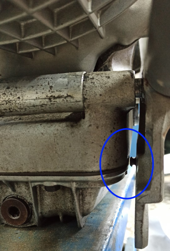 Die Halterung der Hauptständerfeder und der Ölfilterdeckel sind die nächsten Punkte, die das Limit darstellen. Der Ölfilter wird später im Distanzring sitzen.