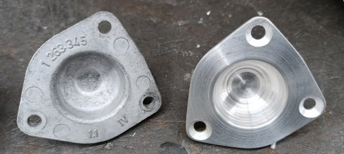 Nachdem ich das Distanzstück auf 12,4mm aufgebohrt hatte, waren die Übergänge so, wie man sich das vorstellt. Die Dichtungen mussten natürlich auch angepasst werden.