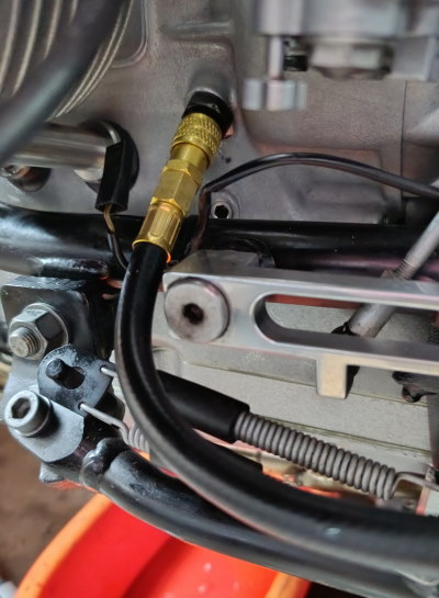 Hab mir einen Öldruckmesser (Werkstattequipment) gekauft und montiert. Leider zeigte der auch keinen Öldruck an. Zusätzlich gab es Kontakt zwischen dem Ölfilter und den unter dem Motor verlaufenden Krümmern. Ich war nahe dran zu verzweifeln.