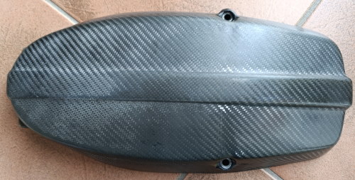 Zu dem Moped gehört auch ein Carbon Lima-Deckel von HPN. Leider sah der alles andere als gut aus. Scheinbar ist das Epoxy nicht UV resistent und hat sich gelb/braun verfärbt und irgendwie ist die Oberfläche auch nicht mehr homogen. So wie man es auch von den Baja-Blenden kennt.