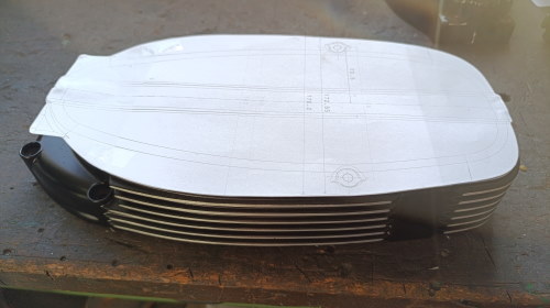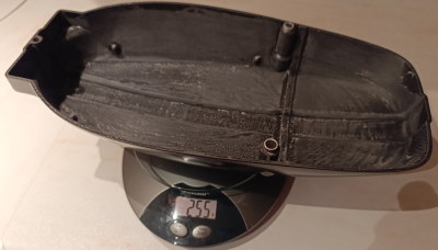 In die Anschraublöcher habe ich noch Alurohre eingesetzt damit sich der Deckel beim Anschrauben nicht durchbiegt. Dann noch mit Epoxy beschichten, schleifen und lackieren. Mit 255g nahe an der Carbonversion. Ich glaube es geht auch noch leichter, vielleicht beim nächsten Mal.