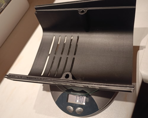 Die leichtere Version ist nun fertig. Sie wiegt fertig lackiert 146g. Da kann ich mir dann das Zusatzgewicht für die Schriftzüge leisten Mit den aufgeklebten Schriftem wiegt die Abdeckung nun 170g.