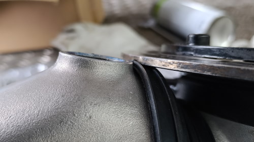Heute wollte ich die Schwinge mit dem Faltenbalg komplettieren. Leider ist mir dabei aufgefallen, dass der Faltenbalg zu nah an der Bremsscheibe sitzt. Bei der Mystic ist dort eine Fläche angebracht worden, damit mehr Platz entsteht. Also habe ich es auch so gemacht.