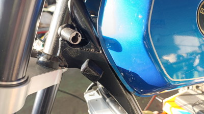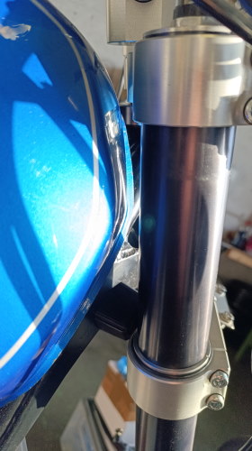 Die Gabelanschläge in der härteren Version funktionieren gut. Momentan sind sie provisorisch mit doppelseitigem 3M Klebeband angebracht. Das wird aber noch mal geändert auf ein anderes Klebeband.