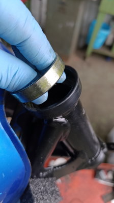 Ich vergaß noch das Lenkkopflager zu erwähnen. Das habe ich nach dem Prinzip von Emil Schwarz eingebaut. Das heißt, die Lagerschale hat leichtes Untermaß und wurde eingeklebt.