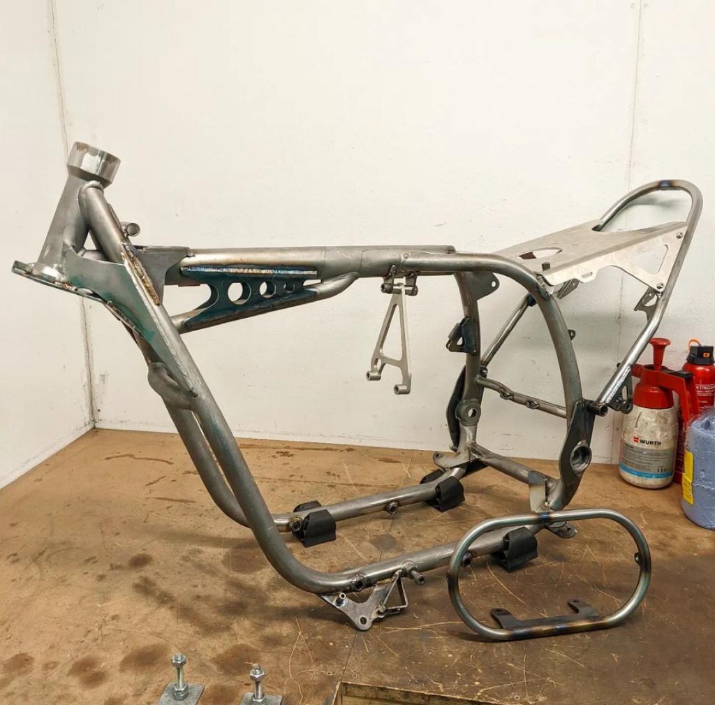 Hallo Udo, schönes Projekt gefällt mir! Hab mal ne Frage, weshalb der ganze Versatz. Ist das wegen der Reifendimension? Kläre mich bitte auf. Das mit der obren Rahmenversteifung am Motor ist ja eher was für die Rennstrecke so wie es ausieht, und deinen Fotos zu beginn des Themas.