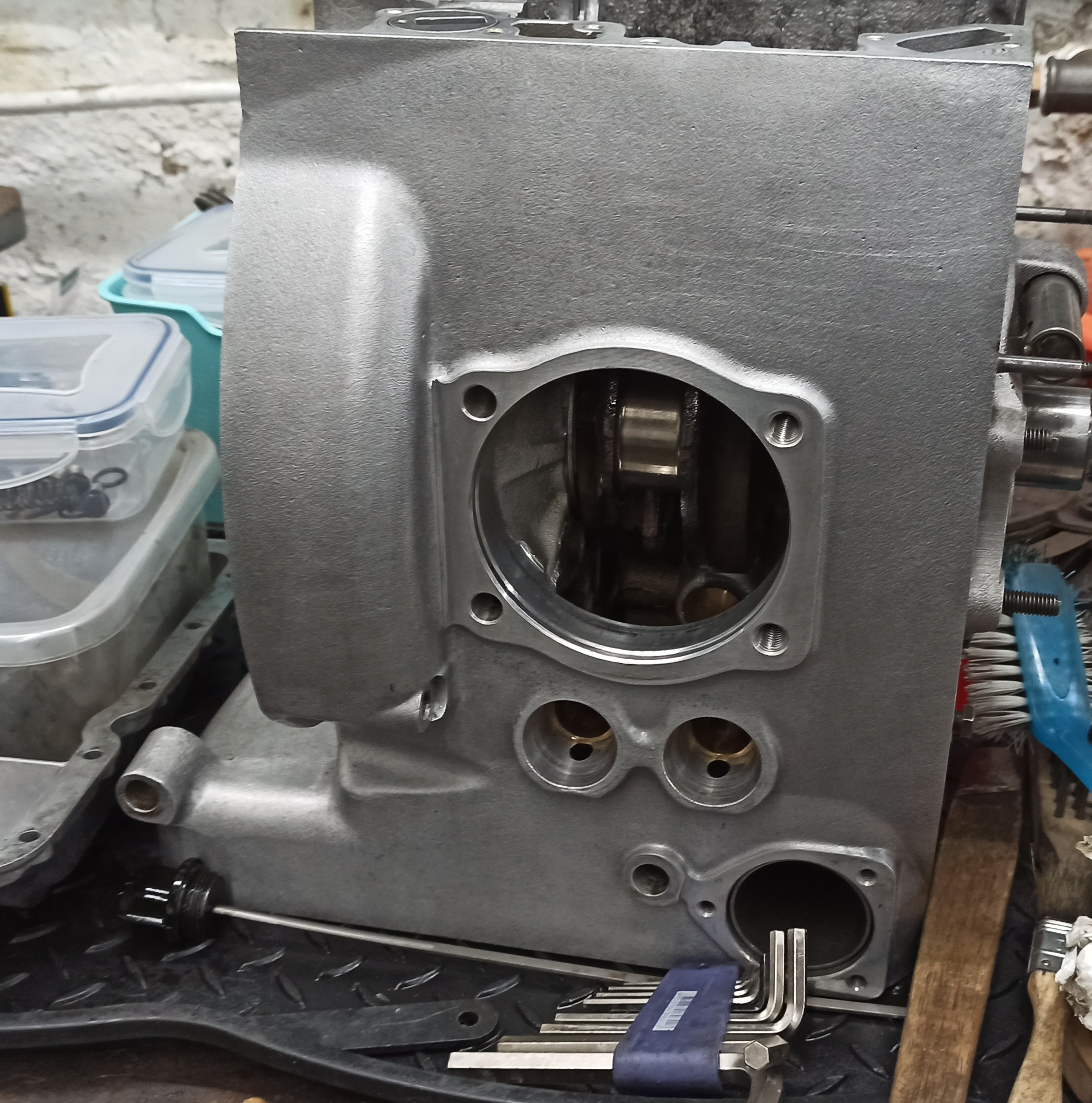 Ich habe gestern und heute mit dem Reinigen meines Ersatz-Motorgehäuses verbracht. Ganz schön aufwändig. Eigentlich wollte ich den Motor später fertig machen. Er sollte mit dem Siebenrock-BBK aufgebaut werden. Das Gehäuse ist aber noch nicht der letzte verstärkte Stand. Daher nehme ich den lieber für den 1000er Motor und der Mystik-Motor Bj. 95 (mit Motorschaden) wird dann mit 1070ccm aufgebaut.