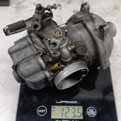Da die Vergaser gerade in der Nähe waren habe ich sie auch gleich gewogen. Ich hatte damit gerechnet, dass die Mikunis deutlich schwerer sind als die Bings.