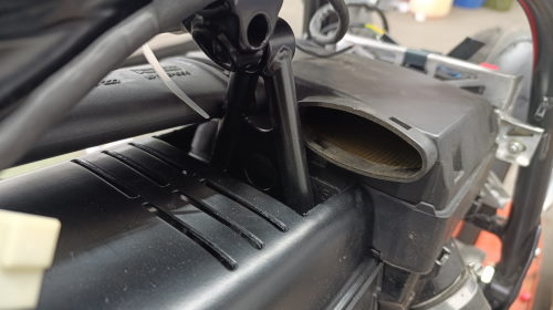 - Der linke Schnorchel vom Luftfilter passt nicht, da die 3. Motorhalterung im Weg ist. Da muss ich mir auch wieder etwas einfallen lassen.
