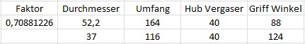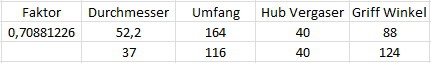 Hier der Vergleich der Durchmesser und Drehwinkel: