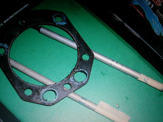 Ich bin schon zufrieden, das mir Klaus (Pepperl) erklärt hat das die Kopfdichtung nicht symetrisch ist. Bei falschem Einbau verengen die Löcher für die Stösselstangen den Tunnel für die Selbigen, ja und dann kommt es zu Reibungen. Was erzähl' ich lang, ein Bild sagt mehr als tausend Worte.