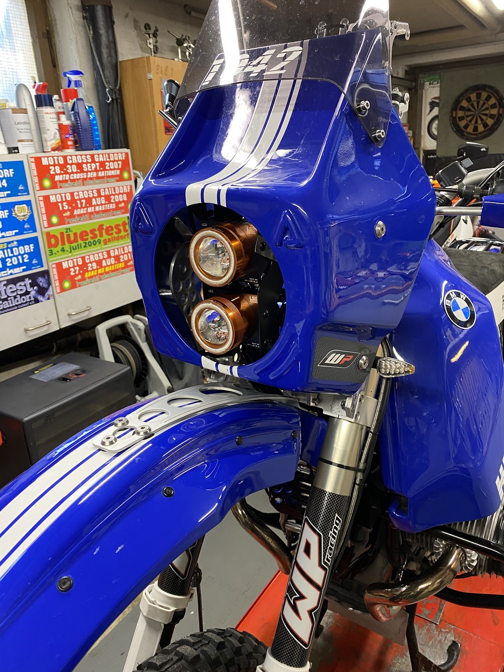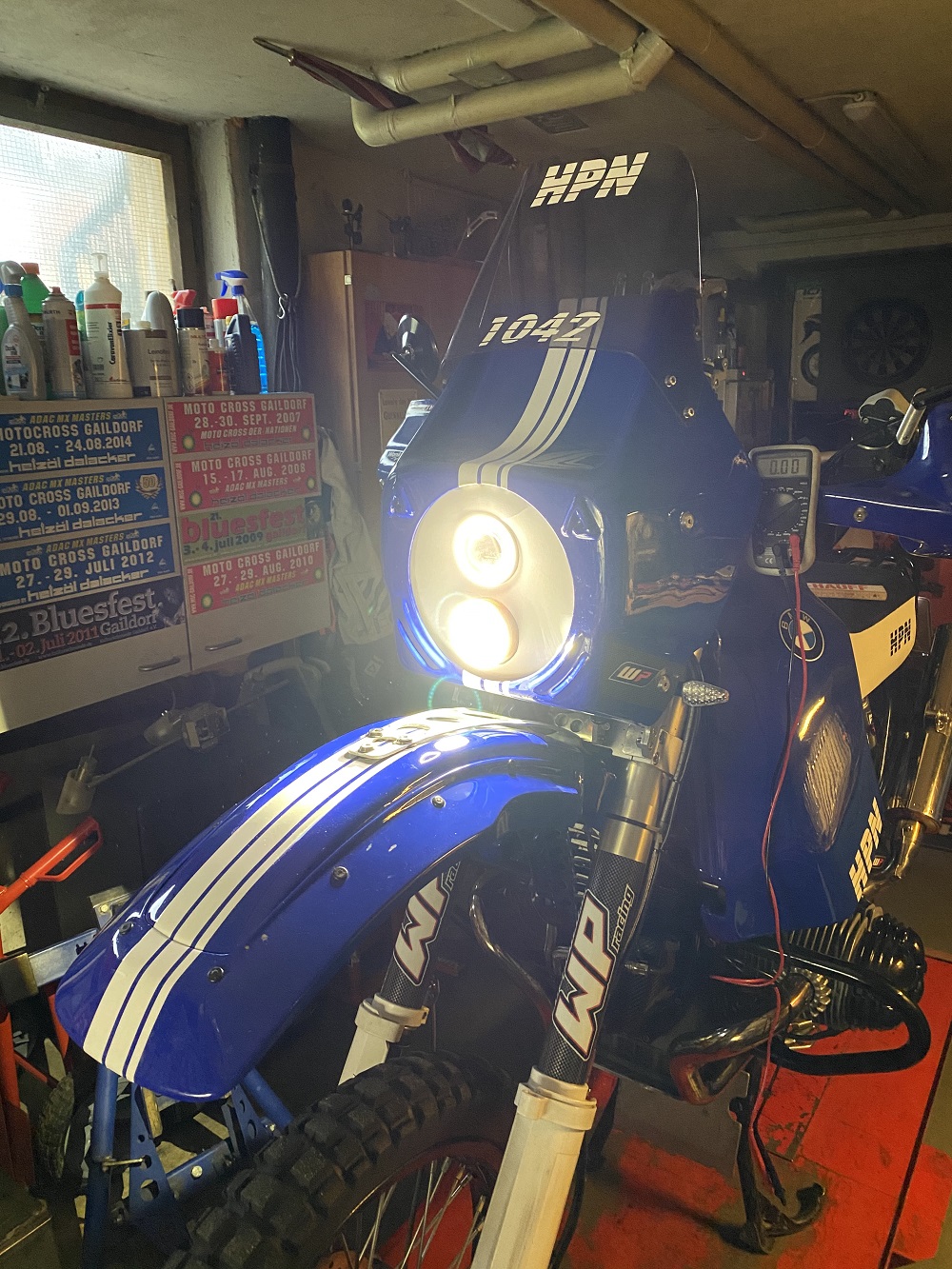 Ich hätte auch gerne LED-Licht an Stelle des H-4-Lichtes, aber dann in einer runden Plug-and Play-Lösung für die Rahmenfeste HPN-Verkleidung. Ich finde diese übereinander stehenden Scheinwerfer passen besser zu der schmalen KTM-Verkleidung. Vom Handwerklichen her, sieht der Turm schon toll aus. Wobei es mindestens schon eine Rallye-erprobte blau-weiße HPN mit den übereinander verbauten Scheinwerfern gibt. Viele Grüße aus dem Wupper-Tal, Wolf
