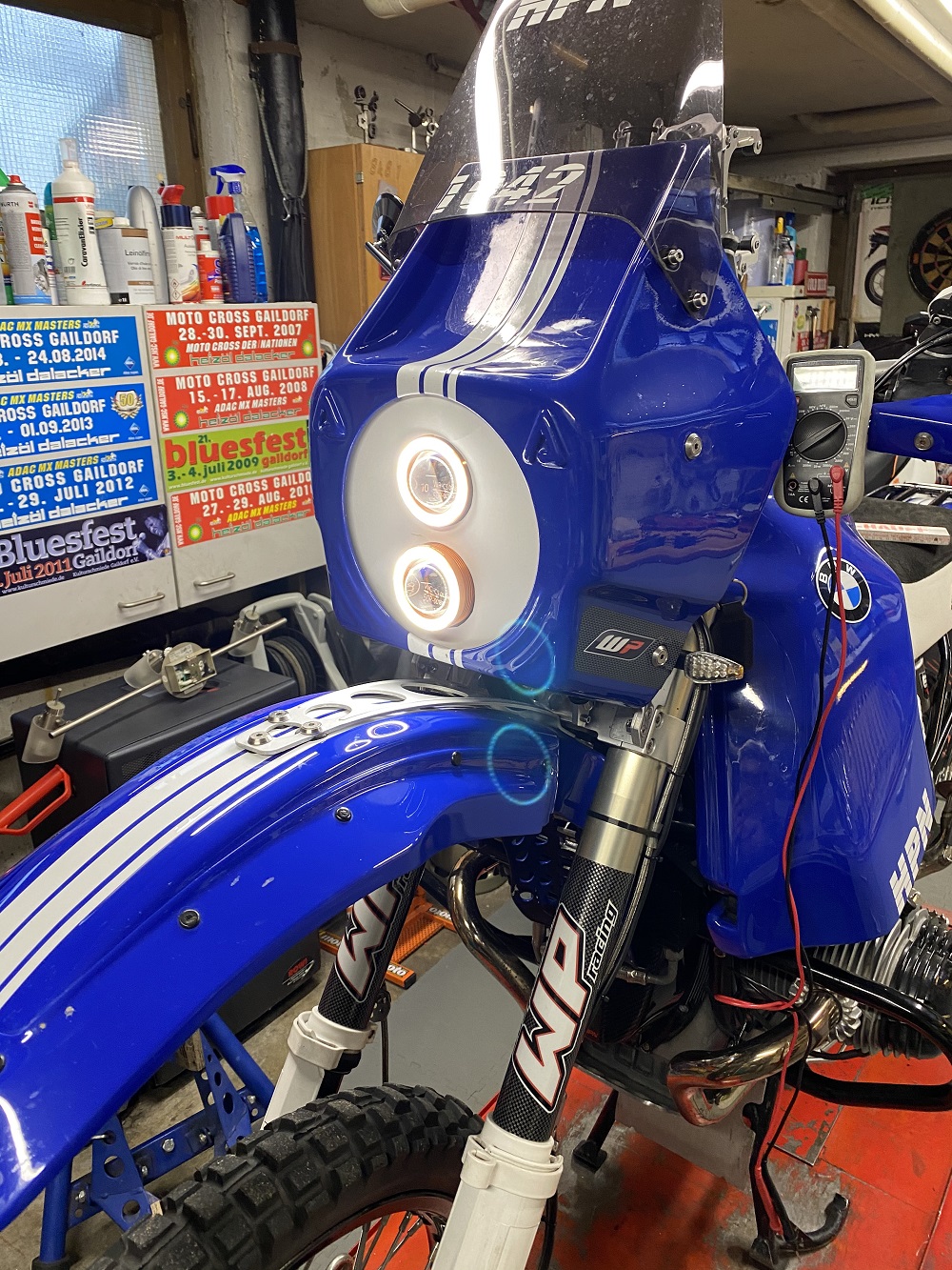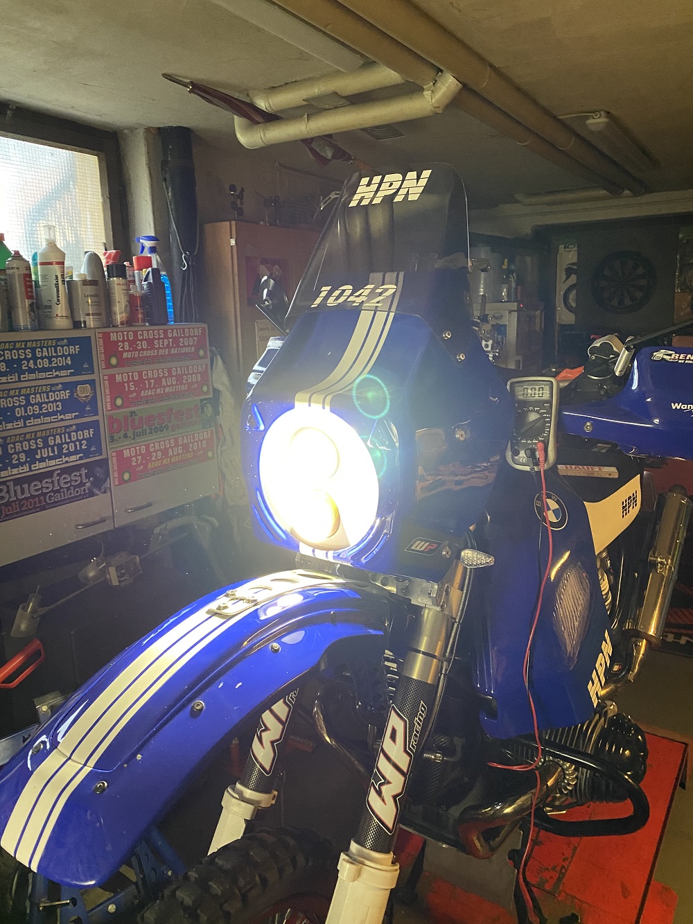 motorradtoskana: ...............Wobei es mindestens schon eine Rallye-erprobte blau-weiße HPN mit den übereinander verbauten Scheinwerfern gibt. Viele Grüße aus dem Wupper-Tal, Wolf