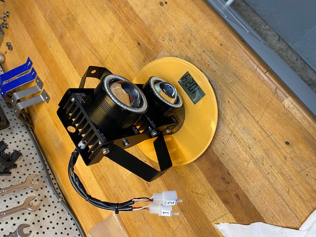 der H4 Scheinwerfer von Bosch mit Leuchtmittel wiegt auch nur 870gr. keine 1,2kg. ...