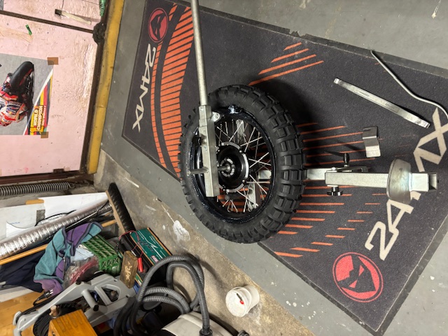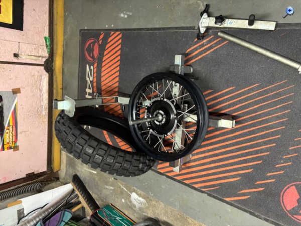 Hier mal wieder ein paar Bilder vom Fortschritt an der 802. Hinterrrad wurde noch am selben Abend nach dem ich von Seibersdorf zurück gekommen bin mit einem Reifen verheiratet. Seitenständer geht etwas schwer unter den Rahmen. Habe mir für den Endantrieb eine Entlüftung, die mit einem Schlauch hochgelegt wird, gegönnt. Das Originale Teil ist nur eingepresst , und lässt sich unter wiederstand mit einer Zange ausdrehen. Die Buchse mit dem Gewinde für ddas Winkelstück für den Schlauch, habe ich mit Eisspray eingessprüht und unter zuhilfenahme eines Schonhamers eingeschlagen.