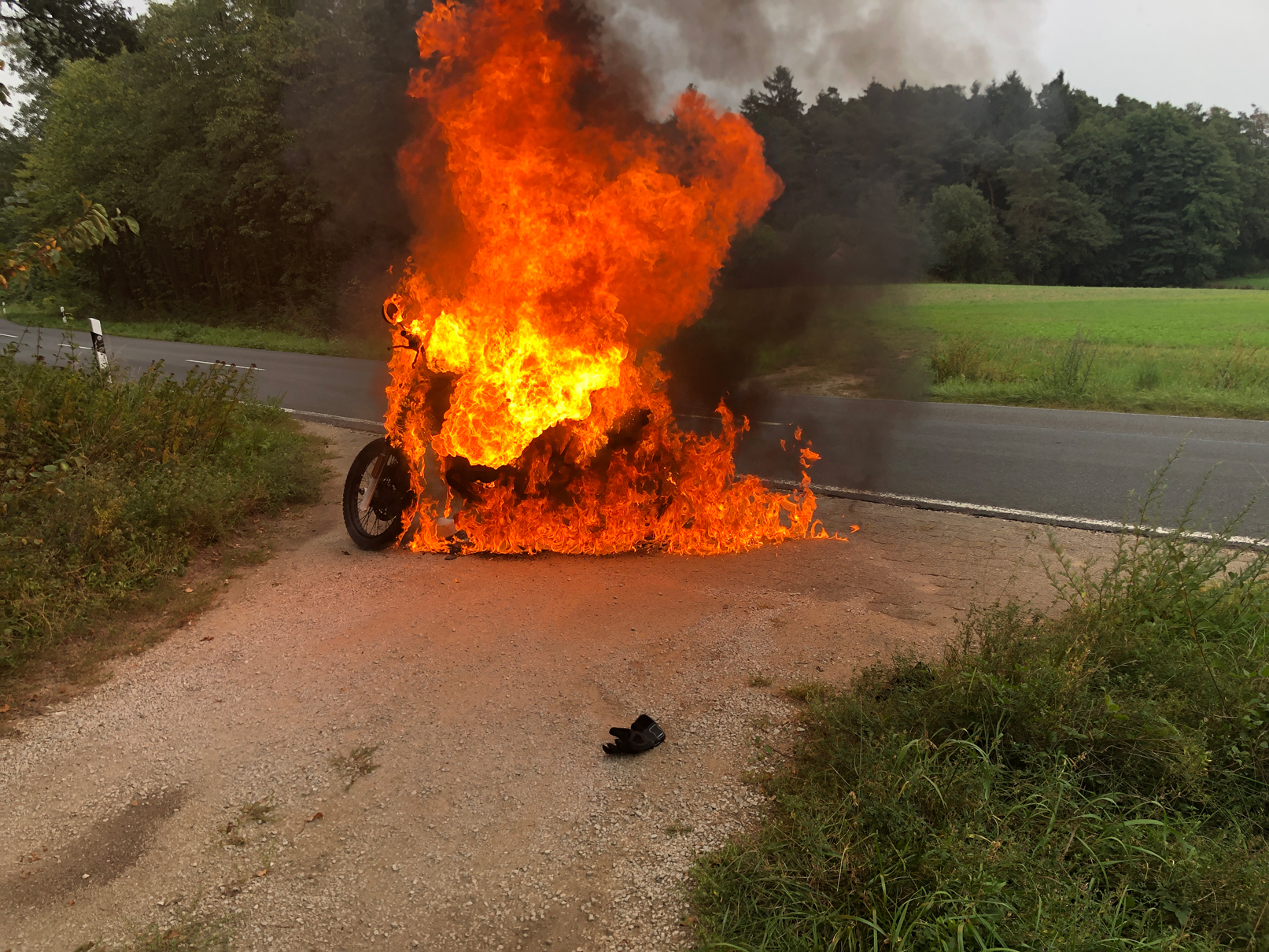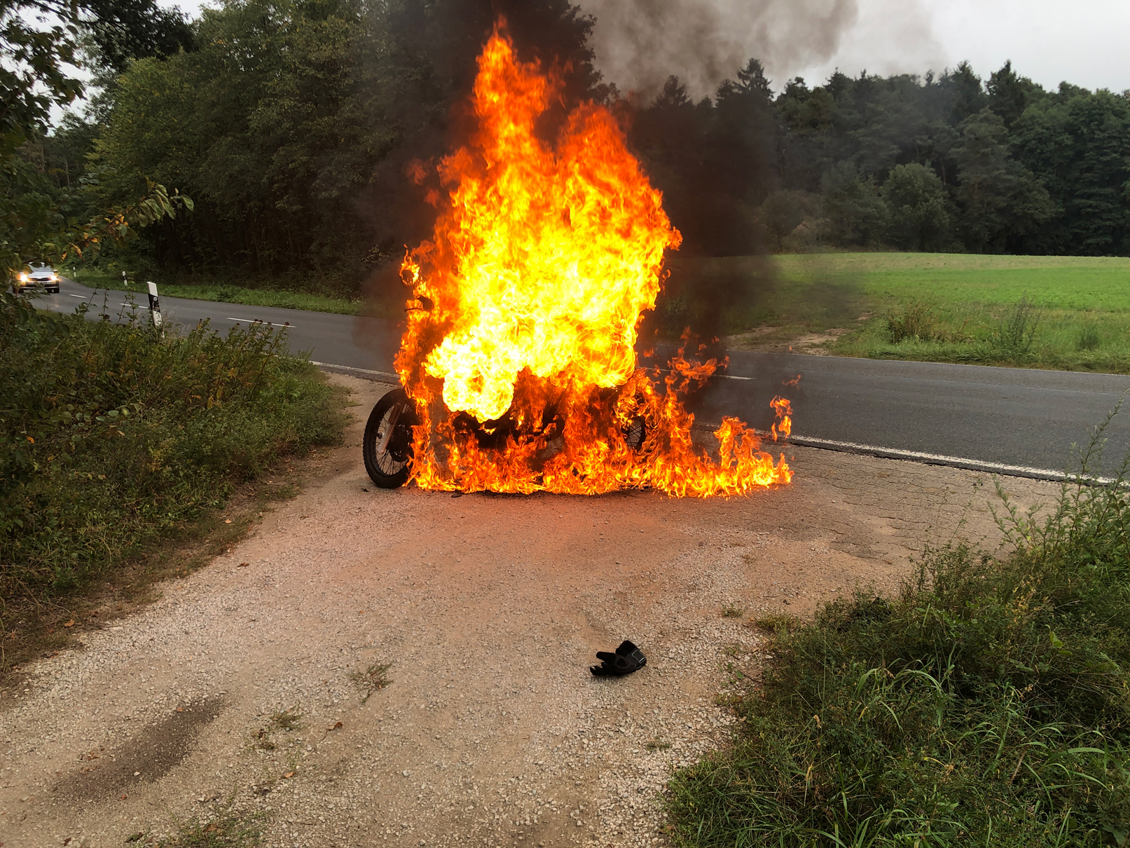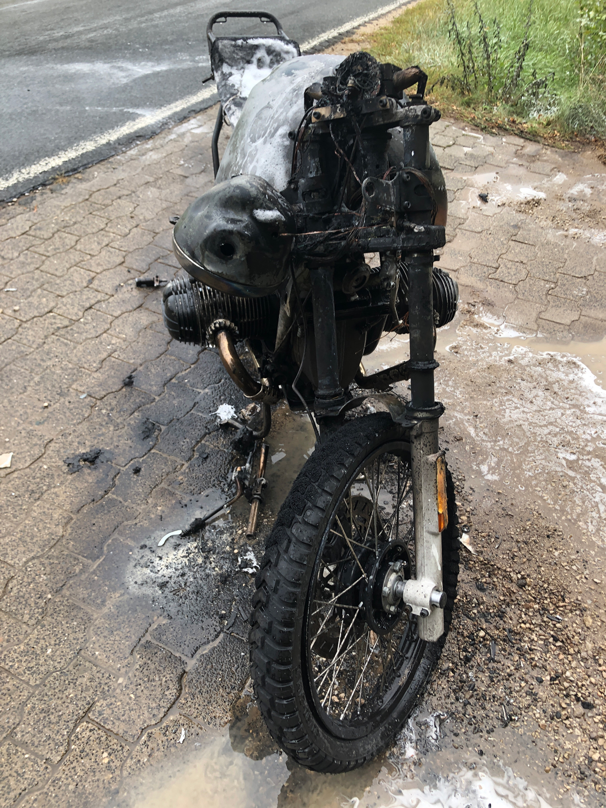 Die Fotos sind heftig. Im Bild Nr. 03 sieht man, wie das Benzin im Tank kocht ... und wenn man bedenkt, dass in diesem Bild der Alu-Lenker weggeschmolzen ist, dann bekommt man einen Eindruck von der Hitze.
