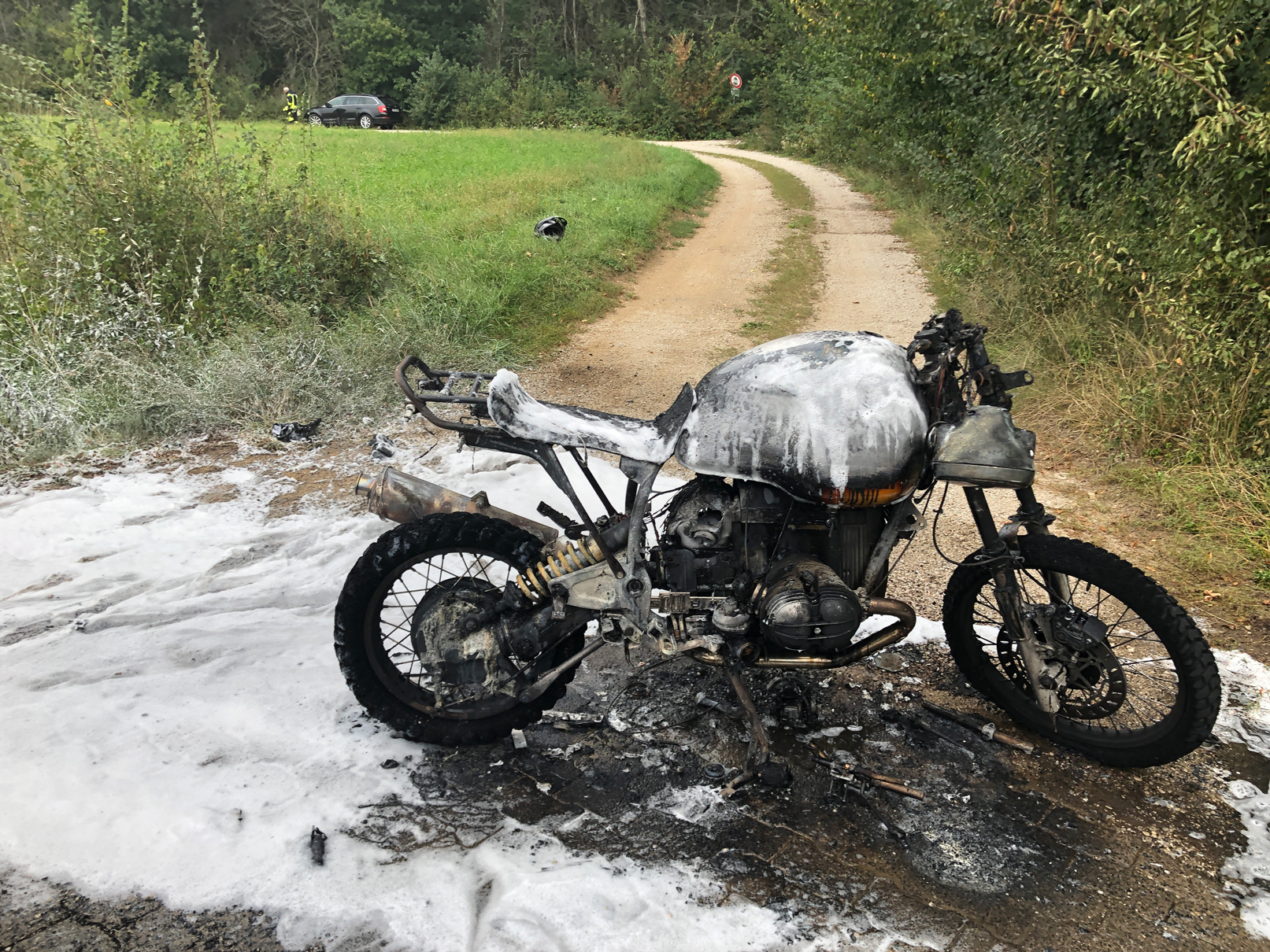 Bis auf ein par Brandblasen am linken Bein ist mir nix passiert (dem Leder sei Dank!).