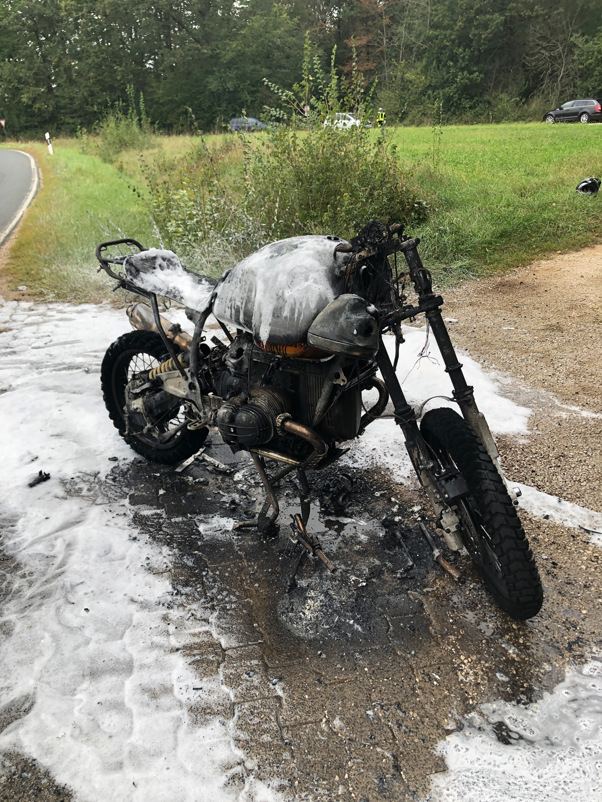Ich konnte das Motorrad noch abstellen und hab dann erstmal meine brennenden Beine gelöscht...