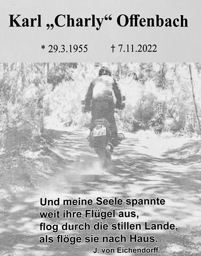 Unser lieber Charly ist zu seiner letzten Tour aufgebrochen.