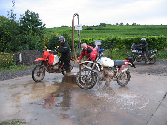 Hallo Gerd, hallo nüchterner Yeti, Yeti, als Motorradfahrer solltest Du immer stocknüchtern sein ( ist meine Devise ), als Autofahrer darf es auch schon mal ein 0,3l-Glas Bier sein, danach gibt es nur noch alkoholfreies Bier.  So, was heißt P.O.R.T. ? Das ist, oder ich muß sagen, war leider die Pfälzer-Offroad-Tour in der Nähe von Worms und im Donnersbergkreis. Da ging es immer über ( nicht gesperrte ) Feld- und Weinbauernwege zu fahren. Ob das alles so legal war, ist die andere frage, denn wer möchte als Bauer mal eben 25 bis 30 HPN´s über seine Wege fahren sehen . Da gab es schon mal ´ne Schnappatmung einiger Anwohner, oder auch schon mal , nachdem die erste ( Heizergruppe ) durch war, eine Bierbank als Straßensperre. Organisiert wurde das damals von Roki ( rokis-gs-page.de ), weitere Fotos gibt es in der Galerie bei www.hpnoc.de .
