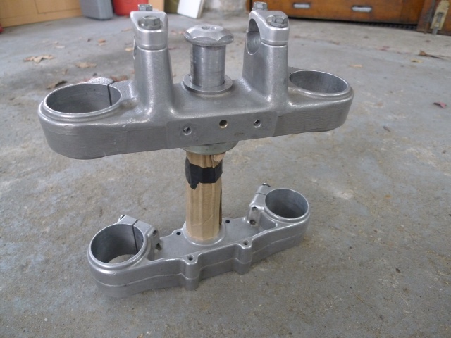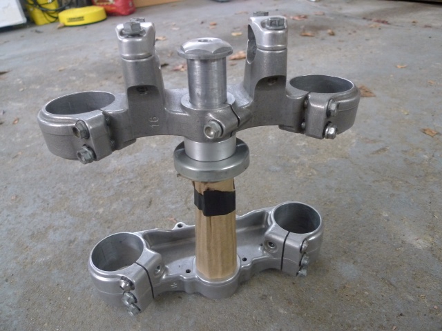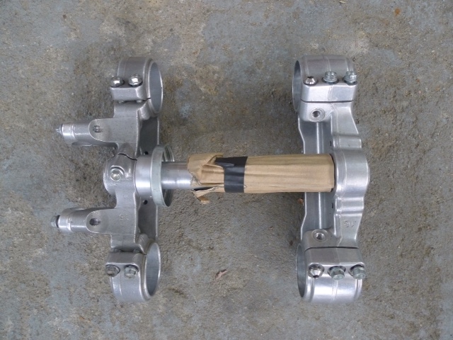 ich habe von meinem Umbau eine sehr gut erhaltene 50mm Gabelbrücke aus einer KTM aus 1998 (oberer und untere Brücke) über. Das Steuerrohr ist auf 28mm angepasst und passt an die 2V-GS G/S. Die Holme einer Marzocchi Magnum 50 waren vorher in den Gabelbrücken.