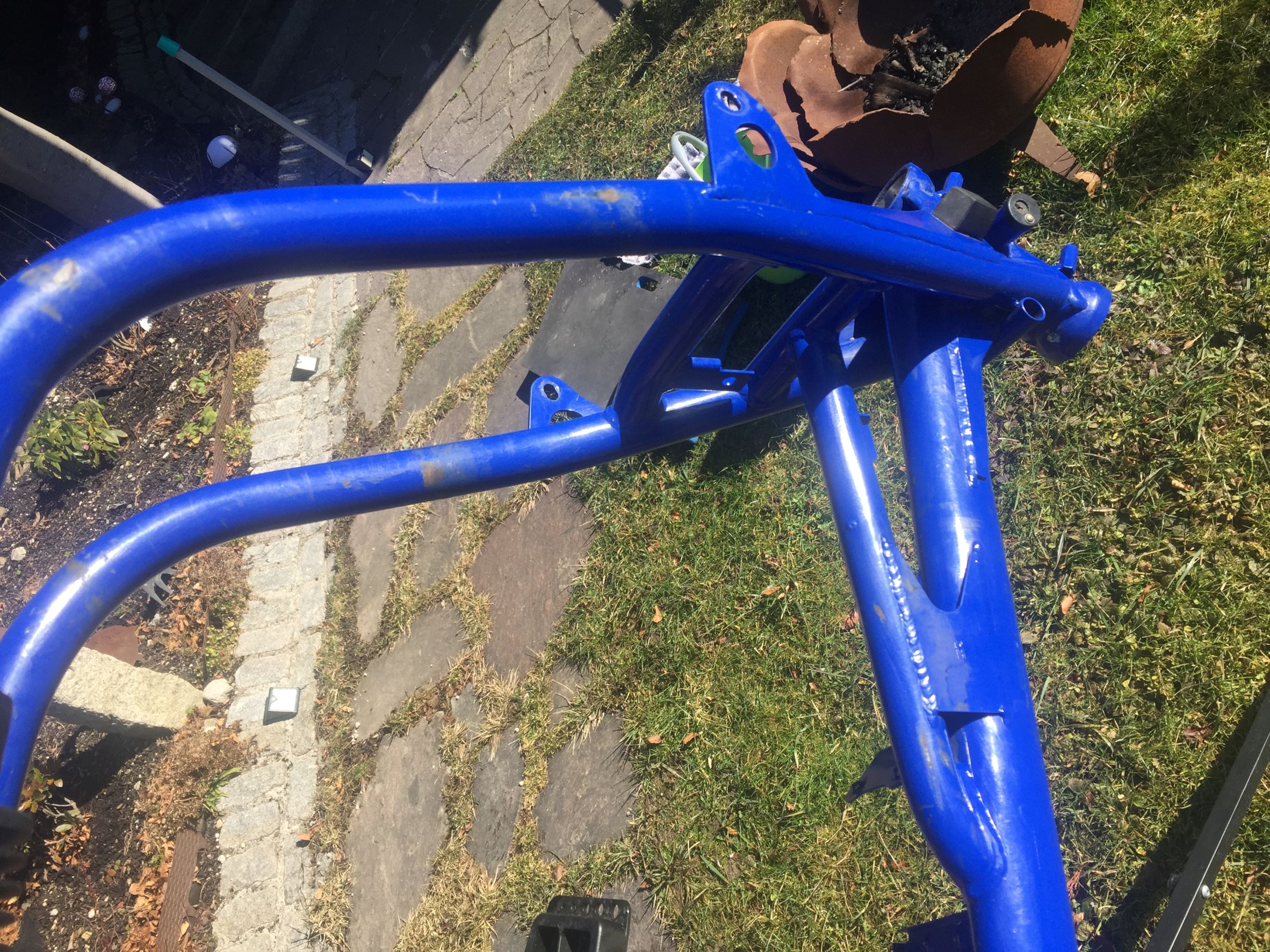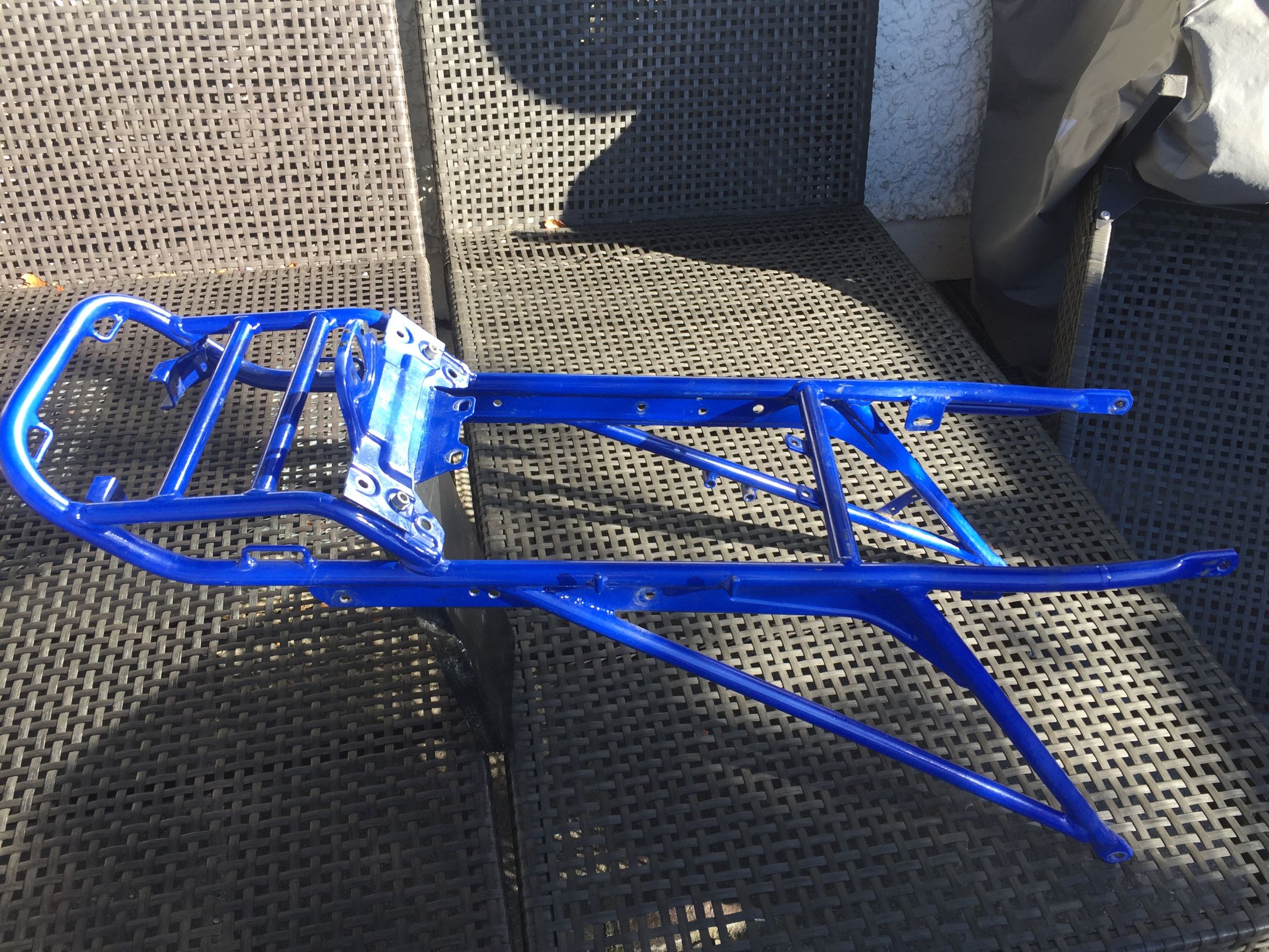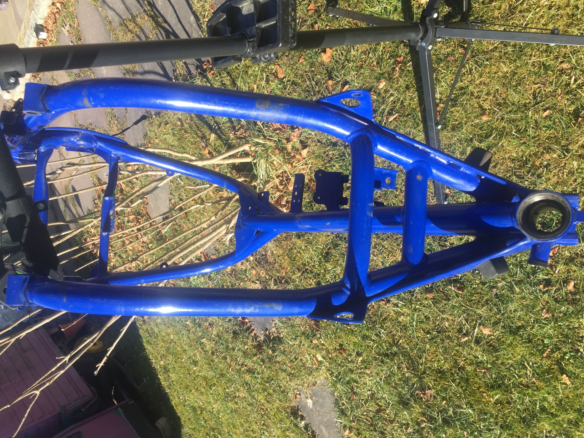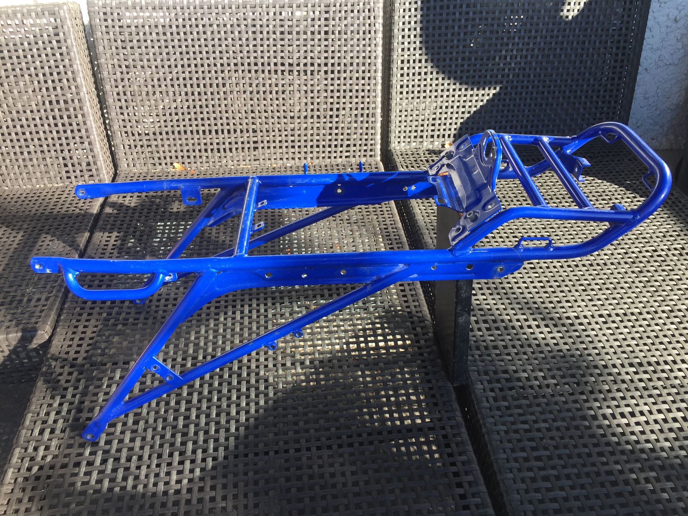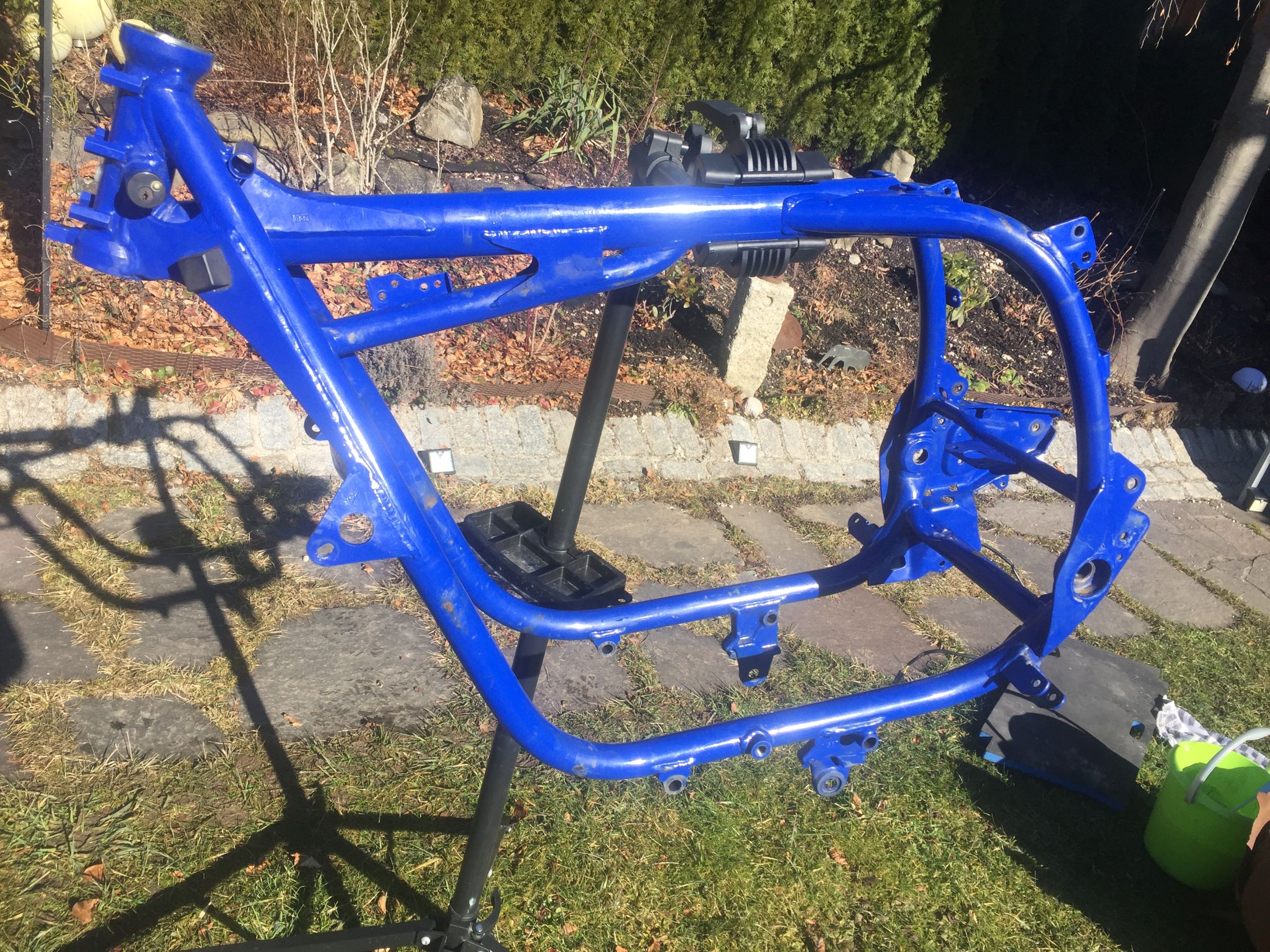-Hauptrahmen von HPN, Nr. 399-Version "Sport" (mit Zentralfederbein), rahmenfeste Verkleidung möglich; EZ 1994, Umbau 2000; -Heckrahmen von HPN, für 2er-Sitzbank -Hauptständer von HPN, verlängert -Telegabel WP HPN 2, 300mm -Gabelbrücken unten und oben mit Lenkerböcken 22mm, Distanzbuchsen, Steuerrohr mit unterem Lager-ohne oberes Lager! -Federbein WP HPN Sport, 245mm -Vorderrad Akront 21x1,85 mit Reifen Heidenau -Hinterrad Akront 17x2,5 (glaube ich) -Doppelscheibenbremsanlage vorne (Gussscheiben, 2x285mm) mit Leitungen, Bremssättel, Bremspumpe usw-komplett mit Hebel/Lenker/...