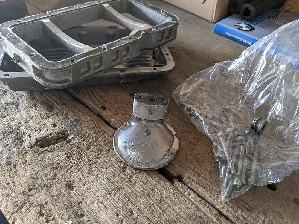 Der Distanzring hat jetzt 3 Jahre nach Abbau im Regal gelegen und sollte sicherlich leicht gereinigt werden, alle Schrauben sind mit dabei, Ölwanne und Glocke mit Ansaugstück. Dichtungen müssten dazu gekauft werden, wenn man die alten nicht behalten will ;) Hersteller ist mir unbekannt, kann ich sicher aber nachreichen, wurde vom Gletter damals bezogen, Rechnung liegt vor.