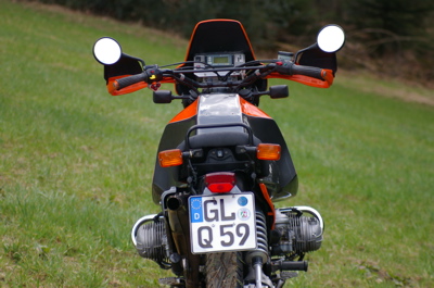 Motor 1043ccm Getriebe kurzer 1. und langer 5. Gang Gletter wasserdichte Getriebeentlüftung Doppelzündung Q-Tech Hochgelegter Ölkühler 320er HE-Bremsscheibe mit Originalbremssattel Stahlflexbremsleitung Einstellbares White Power Federbein mit Ausgleichsbehälter White Power Federn Gabel 43l HPN Tank 180er Scheinwerfer IMO R300 Sport mit Fernbedienung Touratech VA-Auspuff Acerbis-Handprotektoren Hoher und tiefer Vorderradkotflügel Kurzes Heck mit Kofferträgermöglichkeit Jungbluthsitzbank Doppel Jungbluthsitzbank Einzel mit „Gepäckbrücke“ für Hecktasche Winkelventile Schnellkupplungen (Edelstahl) für Benzinschläuche Vergaserschwimmerkammerfangseile Getriebeölauge Runde Ventildeckel mit Öleinfüllstutzen Bereifung BT 45 Kleine Kung Long Batterie aus 2011