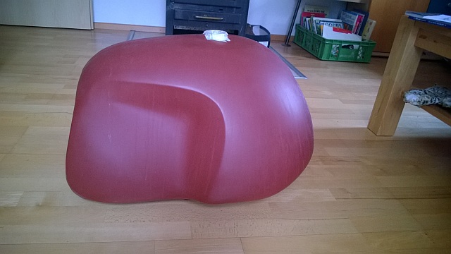 habe beim Kauf meiner G/S, welche ich mir gerade aufbaue ja zwei Tanks mitbekommen. Den original kleinen und einen 40l Heinrich Tank. Der kleine war extrem verrostet, der große nicht ganz so schlimm. Aufgrund von Tipps hier im Forum hat mir Firma Däschlein beide Tanks innen entrostet und beschichtet, außen gesandstrahlt, teilweise aufgezinnt - gute Arbeit. Auch der kleine original Tank war noch zu retten. Da die Zeiten großer Fernreisen auf einem alten 2V für mich vorbei sind, baue ich die Maschine mit dem kleinen Tank auf, der große steht zum Verkauf. Ich habe bereits ein neues original Gutachten und Typenschild besorgt (Meister Jeckel hat dafür fast 50EUR aufgerufen), Haltesatz ist dabei, zwei alte Benzinhähne auch (weiß nicht ob noch dicht, Sieb fehlt). Ich dachte an 650EUR.